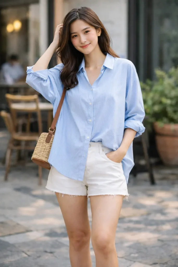 แต่งตัวไปเที่ยวกับแฟน ด้วยการอัพลุคเป็นสาวโตสไตล์ออนนี่ได้ง่าย ๆ ด้วย เชิ้ต x กางเกงขาสั้น เป็นสไตล์ของสาวที่ชอบแต่งตัวมู้ดชิล ๆ ใส่เที่ยวได้ ไม่ทางการจนเกินไป และไม่โป๊จนเกินงาม มีความน่ารักกรุบกริบ ลองเลือกเสื้อเชิ้ตที่มีความโอเวอร์ไซส์หน่อย ใส่รั้งไปข้างหลังก็ดูเซ็กซี่เบา ๆ แมทช์กับกางเกงขาสั้น น่ารักมากกกก แถมเสื้อเชิ้ตยังใส่ได้หลายแบบด้วยนะคะ จะใส่ตัวเดียวปล่อยชายพริ้ว ๆ ก็ดีงาม จะติดกระดุมไม่ครบ เพื่อผูกเอวก็แซ่บ หรือเอาเข้าในแบบไม่ค่อยตั้งใจมาก ก็ดูเซอร์ไปอีก ใส่กับผ้าใบ หรือรองเท้ารัดส้นเปิดหน้าเท้า คือดีย์งาม น่ามอง ครองใจแฟนไปเลยจ้า