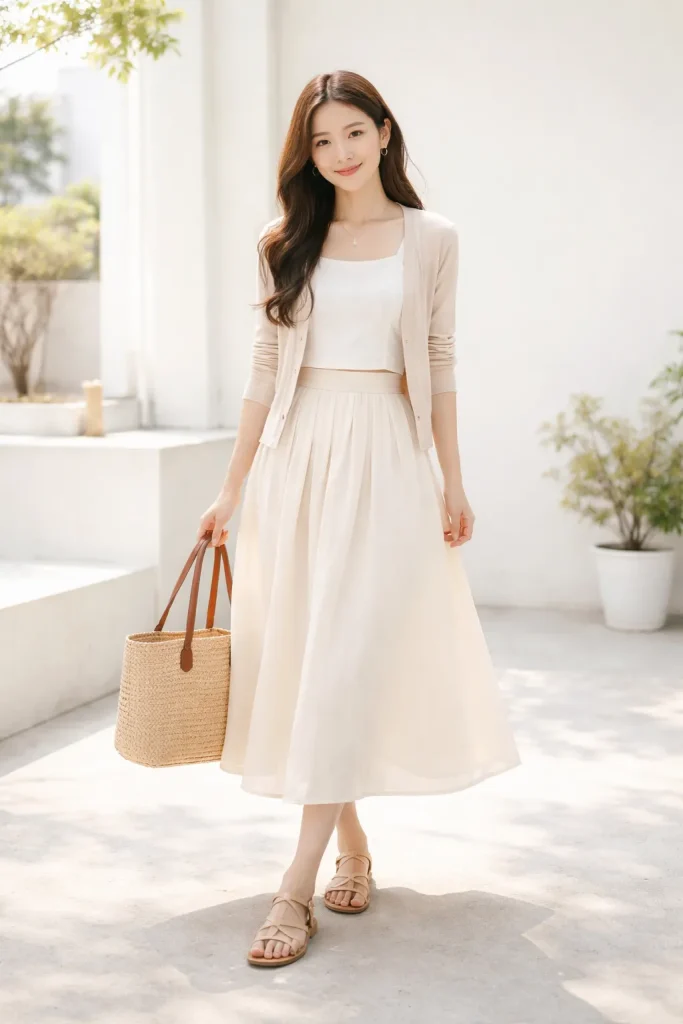 ปิดท้ายแต่งตัวไปเที่ยวกับแฟน แบบละมุนละไมกันด้วย ครีมมี่ลุค คือแต่งตัว โทนสีขาวครีม ดูสะอาดตาและมินิมอลมากจ้าาา ลุคนี้กุญแจสำคัญอยู่ที่สีโทนอ่อนแบบเอิร์ธโทน อย่าง สีขาว / สีครีม / สีเบจ ให้ความรู้สึกตะมุตะมิ แลดูน่าถนุถนอม แฟนเห็นแล้วเป็นต้องหลงรัก! โดยลุคนี้จะมีความมินิมอล และเรียบง่าย แมทช์กับรองเท้าหนังสีน้ำตาล หรือกระเป๋าสาน ก็ดูมีเอกลักษณ์ เป็นลุคที่สาว ๆ ไม่ควรมองข้ามเลยนะคะขอบอก!