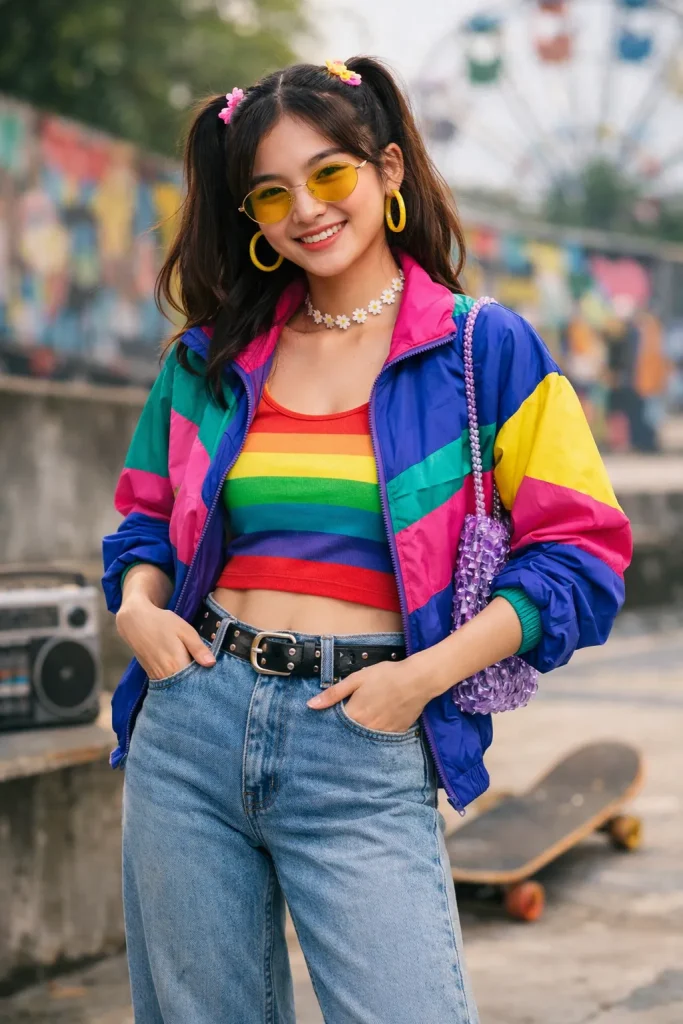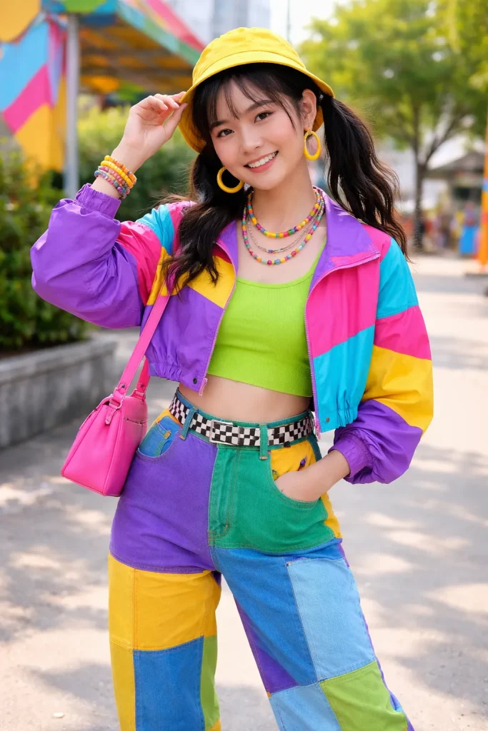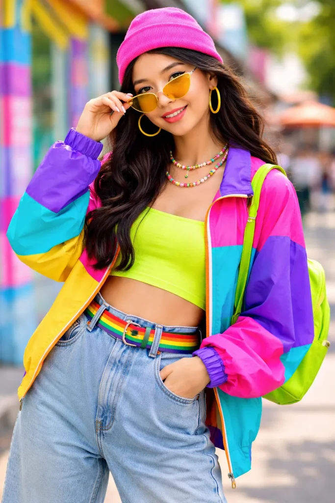 ปฏิเสธไม่ได้เลยว่าในตอนนี้แฟชั่นการแต่งกายของวัยรุ่นคนคูล ๆ อย่างเรา ๆ แฟชั่นยุค 90s มักจะมีส่วนเอี่ยวในความชิค ๆ คูล ๆ นี้ด้วยเสมอ ไม่ว่าจะเป็นกางเกงเอวสูง ทรงกระบอก ขาม้า ลายตาราง หรือแม้กระทั่ง เสื้อผ้าหลากหลายสี ที่ตอนนี้ฮิตกันซะเหลือเกินในกลุ่มชาวเด็กคูล ๆ ทั้งโซนยุโรปและเอเชีย บอกเลยว่าถ้าใครชอบเสื้อผ้าสีสดใส ๆ ล่ะก็ต้องกดเลิฟให้สไตล์นี้กันอย่างรัว ๆ แน่นอน มันไม่ได้ มิกซ์แอนด์แมตช์ แค่สีใดสีหนึ่ง หรือ สีที่อยู่ในโทนเดียวกัน แต่มันมักจะเป็นสีรุ้ง หรือสีที่คอนทราสต์กันซะส่วนใหญ่ แต่บอกเลยว่านางไม่ได้แมตช์ยากอย่างที่คิดเลยแก บอกเลยว่าเจ๋งและเด่นกว่าชาวบ้านเขาแน่นอน