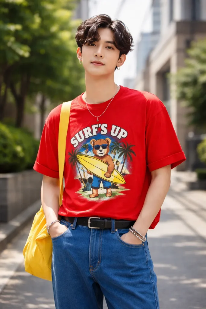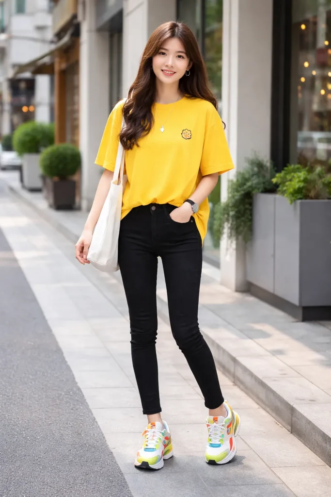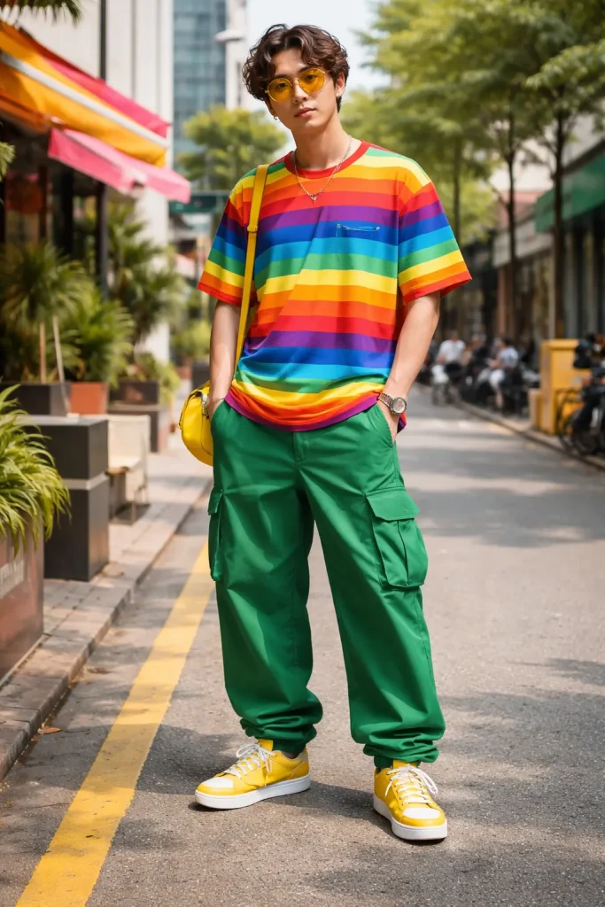 มาถึงอะไรที่ใส่ได้ง่าย ๆ ตามสไตล์คนคูล ๆ แบบเรา นั่นก็คือเสื้อยืดสีสันสดใสต่าง ๆ นั่นเอง จะเป็นลายขวางสีรุ้ง หรือสีสันใด ๆ ก็ตามแต่ นางสามารถนำมาแมตช์กับเสื้อผ้าได้หลากหลายสีเลยถ้าใจเรากล้าพอ ลองดูว่าเสื้อเราเน้นไปที่สีไหนเป็นพิเศษหรือเปล่า ก็ลองนำมาแมตช์กับกางเกง และรองเท้าสีที่เข้าคู่กัน ก็คือว่าง่าย ๆ มีสีเยอะ ๆ ก็เลือกเอาว่าจะเอามาแมตช์กับสีอะไรดี หรือจะแหวกไปสีคู่ตรงข้ามก็ได้ไม่ว่ากัน อยู่ที่ความคูลของแต่ละคนเลยจ้า หรือถ้าขี้เกียจจะเลือก ก็หยิบมาเลย กางเกงยีนส์ตัวโปรด ยังไงก็เข้า