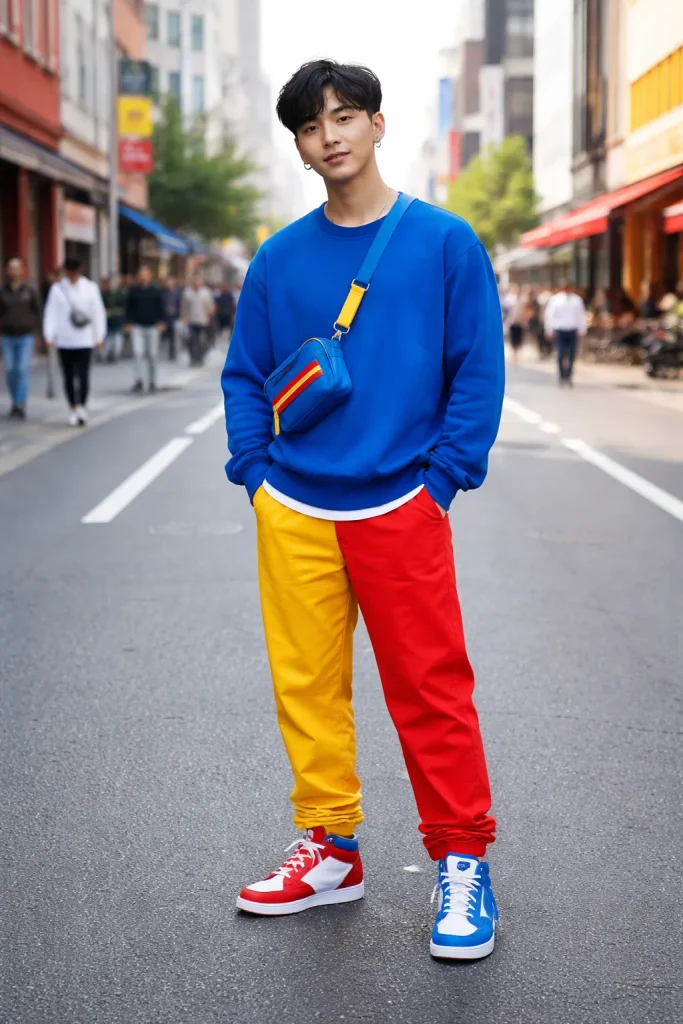 หรือจะเลือกเป็นสเว็ตเตอร์สีล้วน แต่หยิบกางเกงและรองเท้าที่เป็น Primary Color มาแมตช์กันก็คูลไม่เบาเลย ใครมั่นใจ หรือ ชอบแต่งตัวแบบสีสันสดใสเป็นทุนเดิมอยู่แล้วต้องไม่พลาดแน่นอน เพราะใส่แล้วทางเราจะโดดเด่นกว่าชาวบ้านชาวช่องเค้าเลย