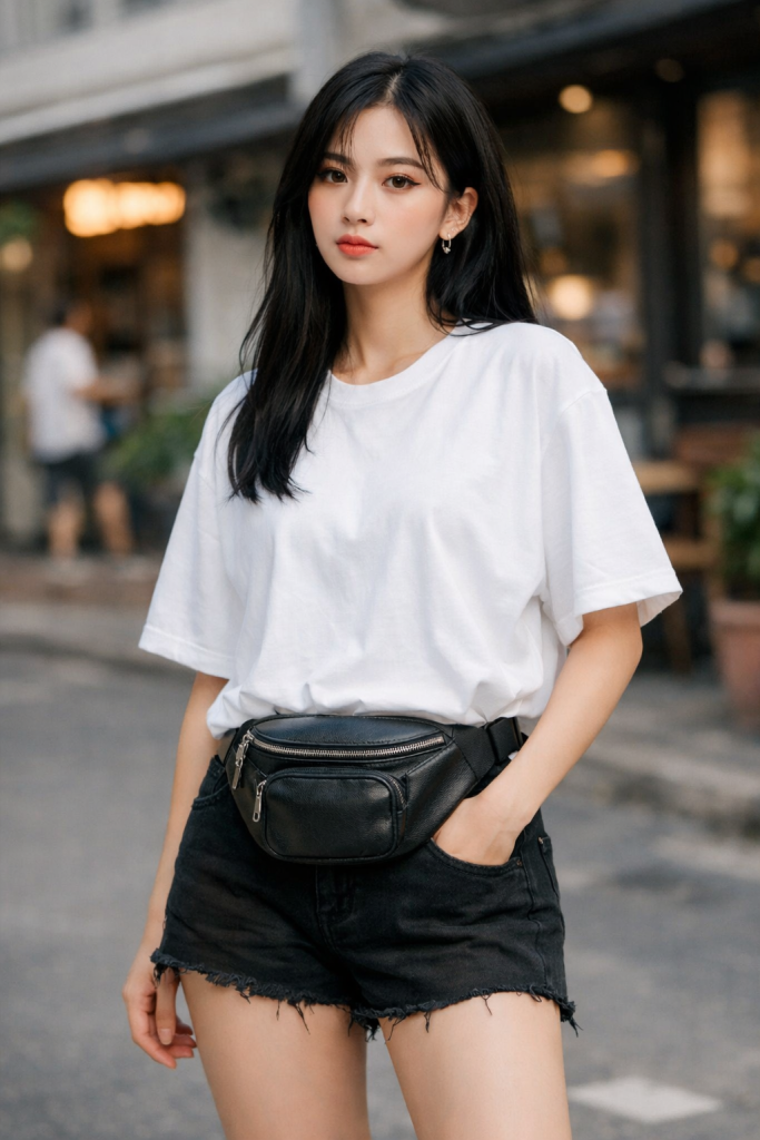 สาวหน้าเก็อย่าง@meiinpsn ก็ใส่เสื้อยืดตัวโคล่งกับกางเกงขาสั้นนะ แถมกระเป๋าคาดเอวเพิ่มความปังให้ลุคไม่จืดชืดเกินไปด้วย