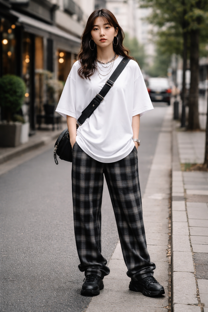 ใส่เสื้อตัวโคล่งกับกางเกงลายสก็อต แบบ @wmssn ลุคนี้ เติมแอคเซสเซอร์รี่อีกหน่อย ก้ออกจากบ้านได้แบบเท่ ๆ แล้ว