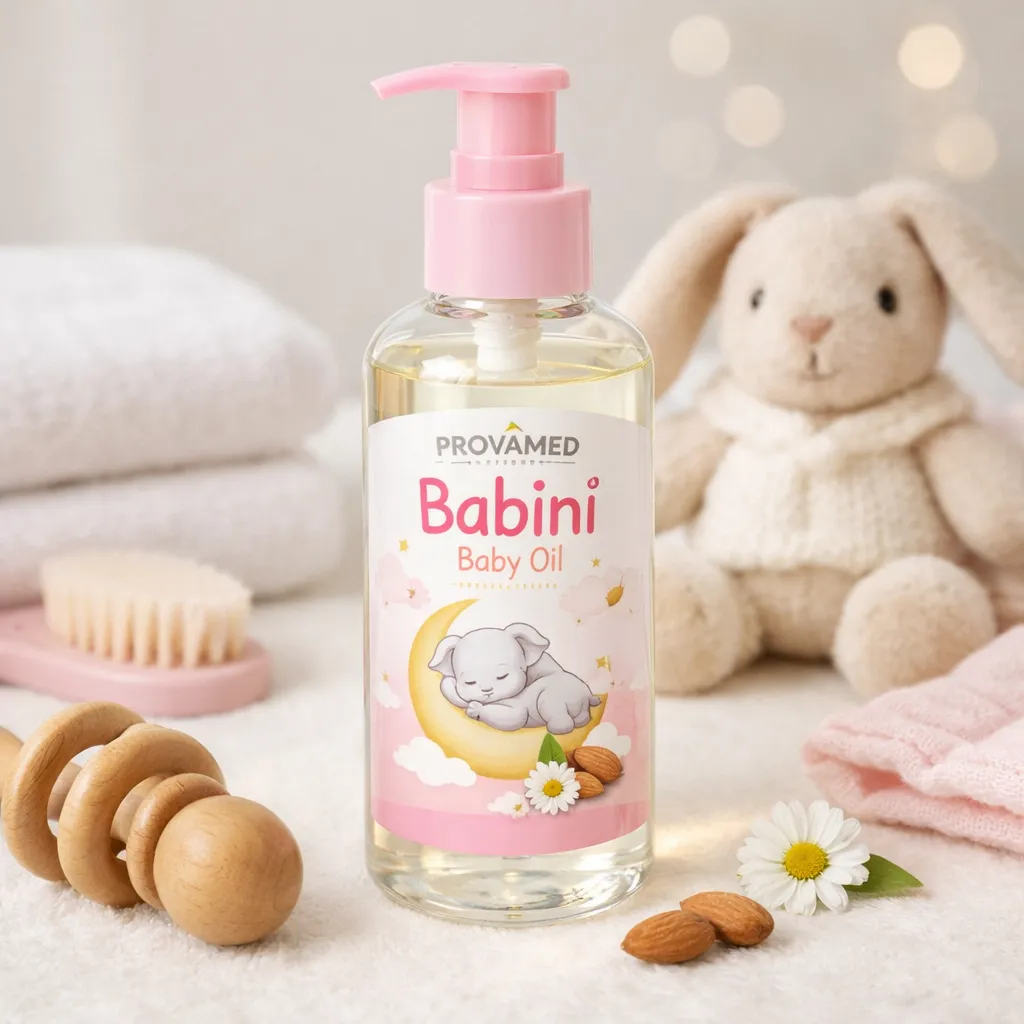 Provamed Babini Baby Oil เป็นเบบี้ออยล์จากแบรนด์ของกลุ่มแม่และเด็กที่มีชื่อเสียงพอสมควรเลยค่ะ ด้วยส่วนผสมหลักอย่าง Salicarne ที่มีส่วนช่วยในการบำรุง ฟื้นฟู ผิวพรรณ ให้กลับมานุ่มชุ่มชื้น พร้อมด้วยปกป้องผิวของสาว ๆ ไม่ให้กลับมาแห้งเสียอีก แถมยังถูกเคลมว่า ช่วยลดอาการระคายเคืองได้ดีมากด้วย! ใครที่มองหาออยล์ที่มีความชุ่มชื้นสูงบวกกับมีเกราะป้องกันผิวเสีย ตัวนี้ก็ตอบโจทย์เหมือนกันนะคะ