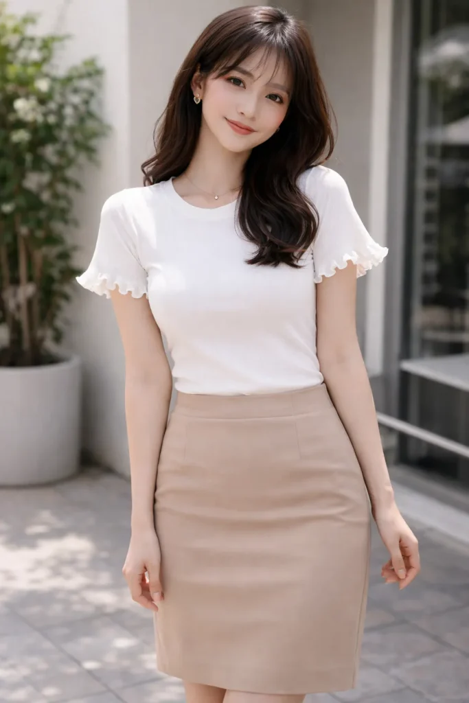 กระโปรงยีนส์ทรงดินสอ + เสื้อยืด