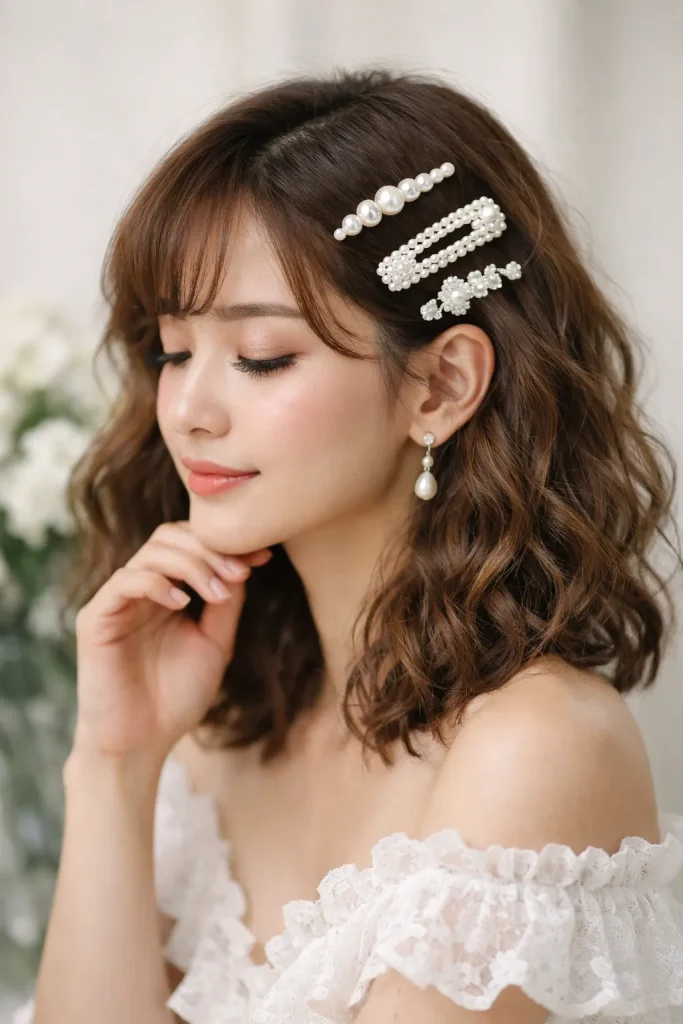Curly hair with Pearl clips