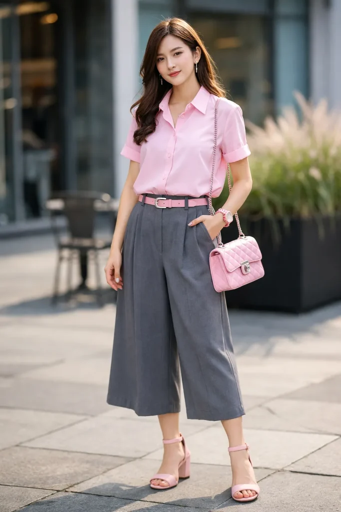 สีเทา เป็นสีที่ดูทันสมัย ทั้งยังดูเท่ ๆ คูล ๆ ทำให้เวลาใส่ออกมา เราจะได้ลุคของสาวมาดมั่น มีความสตรอง ที่ไม่ทิ้งความเท่ แต่ถึงอย่างนั้นบางครั้งเราก็อยากใส่ไอเท็มสีเทา ให้ดูหวานขึ้นมาบ้างใช่ไหมล่ะ? ดังนั้นทางเราขอแนะนำเลยค่ะ กับการแต่งตัวแมทช์ชุดสีเทา-ชมพู สุดเก๋ โดยสีเทาจะเข้าไปเบรคความหวานแหววให้กับเสื้อผ้าสีชมพู ทำให้เวลาเราใส่ไม่ดูหวานเกินไป ในขณะที่สีชมพูเอง ก็จะเข้าไปเติมสีสันความหวานเบา ๆ ให้กับสีเทา ทำให้ลุคของเราดูมีอะไรมากขึ้น อย่างเช่นคุณอาจจะลองใส่กางเกงคูลอตต์สีเทา กับเสื้อเชิ้ตแขนสั้นสีชมพู หรือจะลองใส่ชุดเซ็ตสูทกับแอคเซสเซอร์รี่ในโทนชมพูก็ดูมีความแฟชั่นนิสต้าไปอีกแบบ เรียกได้ว่าการแต่งตัวด้วยคู่สีนี้คือคู่สีที่มีความต่างแต่ลงตัวที่แท้ทรู งานนี้ใครที่ไม่อยากแต่งตัวให้หวานเลี่ยนเกินไปล่ะก็ จับเสื้อผ้าสีชมพูกับสีเทามาใส่ด้วยกันเลยค่ะ รับรอง เริ่ด!