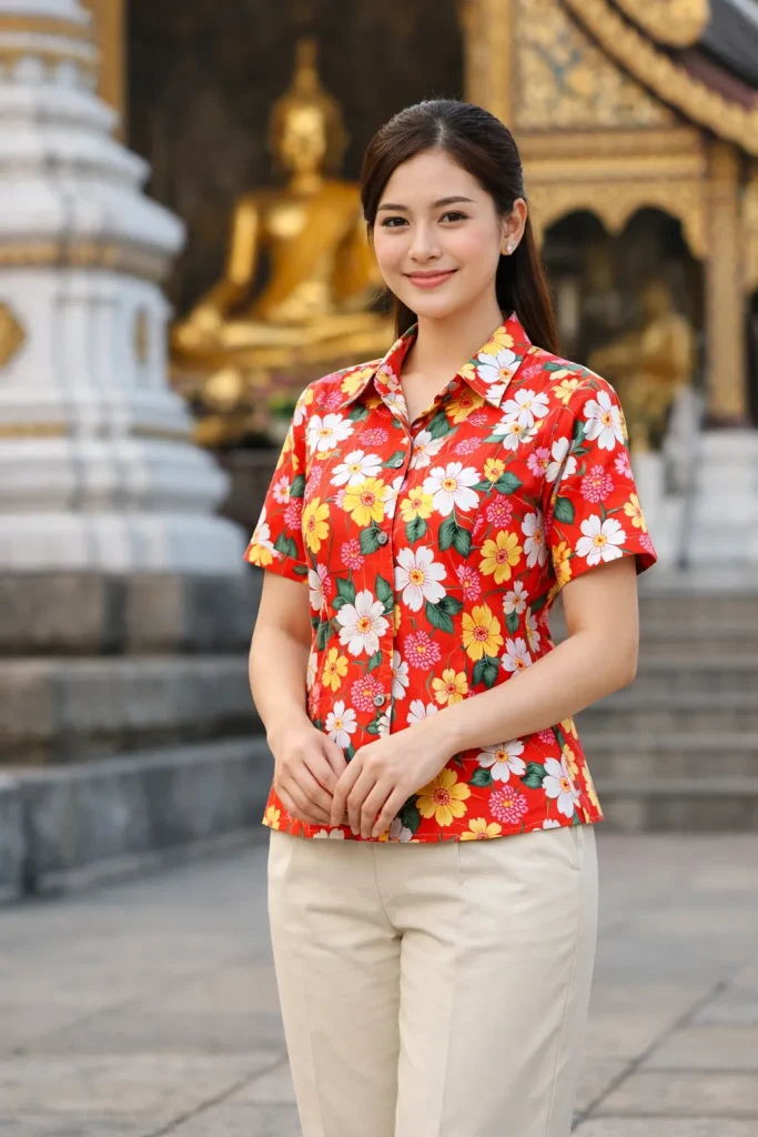 สถานที่บางทีก็มีผลกับการแต่งตัวอยู่น้า ใครที่เลือกไปเล่นน้ำที่ใกล้วัด หรือตามผู้ใหญ่ไปสรงน้ำพระ เราก็ควรสำรวมนิดนึง แนะนำให้ใส่เป็นเสื้อลายดอกอิงประเพณีไปเลยก็ดีเจ้าค่ะ เลือกแมทช์กับกางเกงที่สุภาพหน่อย เป็นไปได้ไม่ควรนุ่งสั้นนะจ๊ะ จะถูกมองว่าไม่จักกาลเทศะเอาได้น้า