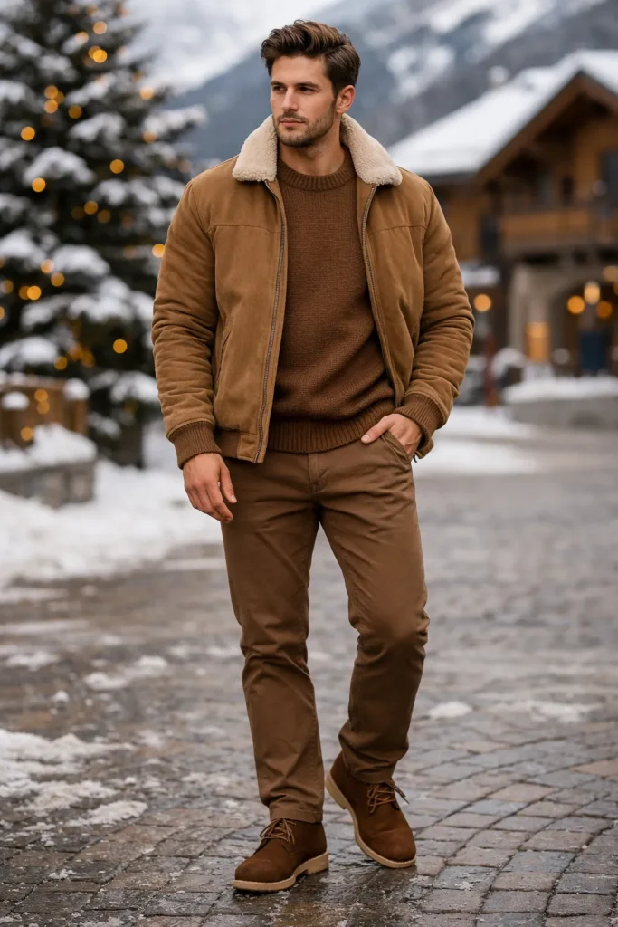 สีน้ำตาล เหมาะสำหรับหนุ่มที่ต้องการ ความแมน ๆ แบบผู้ชายแต่เรียบง่าย ปัจจัยหลักในการแต่งกายสีนี้คือ คุณต้องมีกางเกงชิโน่เป็นอันดับแรก เป็นกางเกงที่คุณผู้ชายทุกคนควรมีติดตัวไว้อย่างน้อย 1 ตัว เพราะกางเกงชิโน่เป็นกางเกงที่สามารถแต่งกายได้ง่าย ได้ทั้งสไตล์สบาย ๆ หรือ จะเน้น ๆ เนียบ ๆ เท่ก็ได้ และโทนสีน้ำตาลมักจะถูกนำมาใช้ในแฟชั่นหน้าหนาวบ่อย ๆ ดั่งนั้นหากคุณมีแพลนกำลังจะไปเที่ยวเมืองหนาวพอดี ลองหยิบสีโทนนี้ไปใช้ดู จะทำให้คุณได้ยอดไลค์ใน Instagram เพิ่มขึ้นแน่นอน