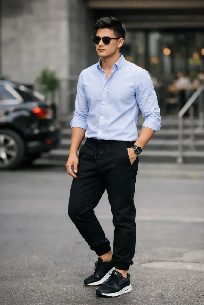 Jogger Pants อีกหนึ่งเทรนด์แฟชั่นที่ได้รับความนิยมทั้งทางหนุ่ม ๆ และสาว ๆ กางเกงที่ดู Active เวอร์ หลายครั้งที่เรามักจะเห็นหนุ่ม ๆ จับคู่กางเกงตัวนี้กับเสื้อยืด แต่อีกหนึ่งสไตล์ที่ ShopSpotter อยากจะแนะนำให้หนุ่ม ๆ ลองแต่งกันดู คือการจับคู่กับเสื้อเชิ้ตแทน จากลุคหนุ่มเท่แบบลุย ๆ ก็ปรับเปลี่ยนให้กลายเป็น Street Luxury ขึ้นมาทันที