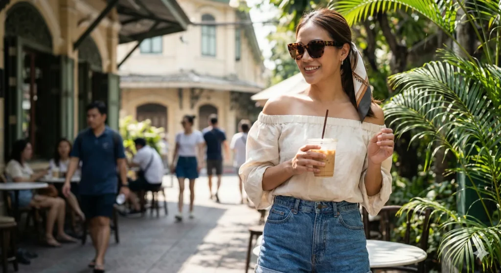 อย่ายอมให้แดดเปรี้ยง ๆ มาทำลายความโดดเด่นในตัวเราค่ะ! อากาศร้อนเราต้องแต่งตัวให้ร้อนแรงกว่า ด้วย เสื้อสีสันสดใส จะลายดอกลายการ์ตูน หรือสีพื้นเฉย ๆ ก็ได้นะ อาจจะไม่ต้องถึงขนาดจ้าแสบตา เห็นมาไกลขนาดนั้น เอาที่พอดี ๆ ก็พอ เพราะความสดใสของเสื้อจะช่วยให้ตัวเราและคนรอบข้างรู้สึกสดชื่นตาม แบบเห็นแล้วก็อยากจะไปหามาใส่บ้าง นำเทรนด์ไปอี๊ก