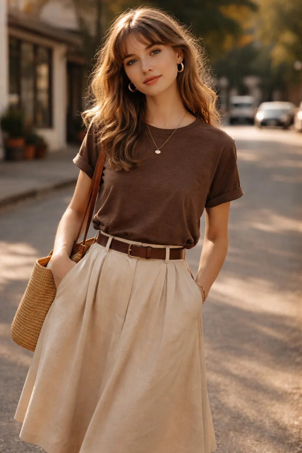 สำหรับสาว ๆ คนไหนที่รักในการใส่กระโปรง ทางเราก็อยากจะแนะนำให้มีกระโปรงสีน้ำตาลติดตู้กันซักหน่อย จะเป็นกระโปรงยาว หรือสั้น ทรงพลีท ทรงเอ ต่าง ๆ ก็ตามแต่ทุกคนจะชอบเลย นางสามารถนำมามิกซ์แอนด์แมตช์กับเสื้อ และรองเท้าได้หลากหลายมาก อยากเป็นสาวฮิป ๆ แบบ ไม่หลุดคอนเสปสาวหวานก็สามารถทำได้เลย บอกแล้วว่าสีน้ำตาลมันเอนกประสงค์อย่างแรง