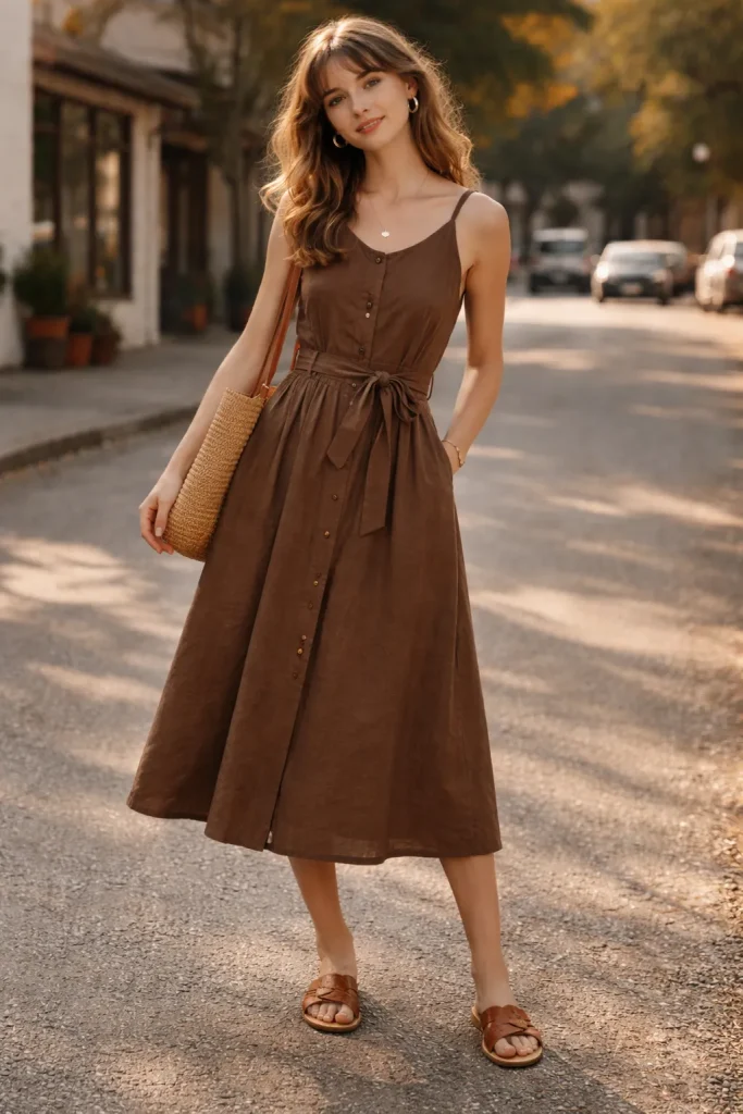 หรือจะเป็นเดรสสีน้ำตาลก็สามารถนำมาแมตช์ได้ อยากอยู่ในลุคสบาย ๆ หรือทางการ สีน้ำตาลก็เอาอยู่ทุกลุกเลยเธอ บอกแล้วว่ามันดี จะคีบแตะยังไงก็ยังได้ Total Look เป็นคนฮิป ๆ อยู่ดี เห็นมั้ยว่ามันดีงามพระรามแปดมากเว่อร์