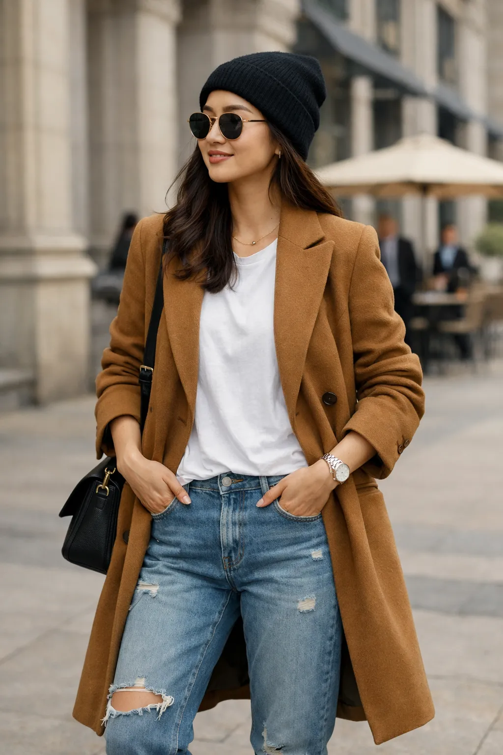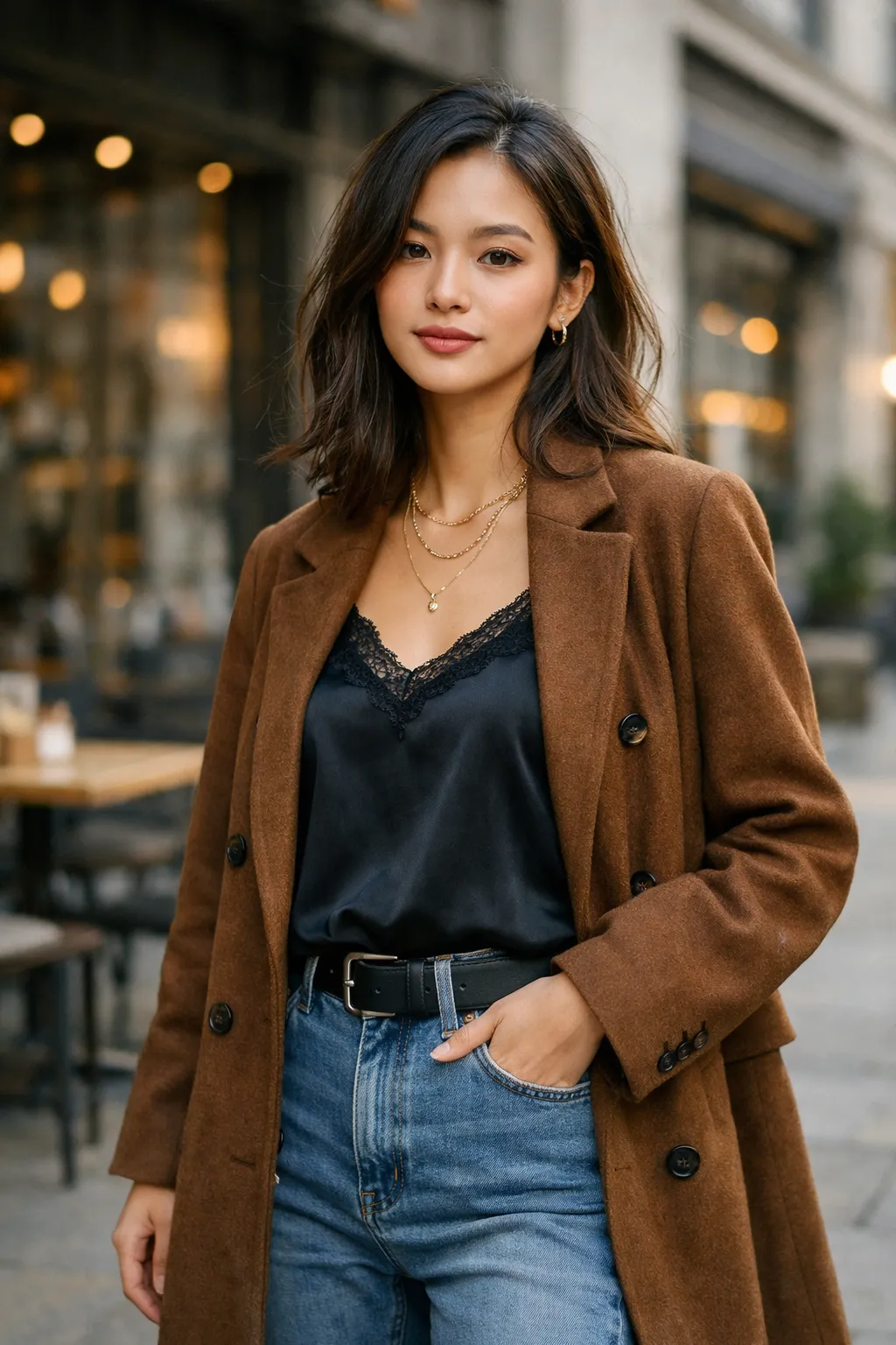 พอมีโค้ทสีน้ำตาแล้ว เสื้อผ้าข้างในเราจะแต่งสไตล์ไหนก็ได้ทั้งนั้น จะเสื้อยืด หรือเสื้อเชิ้ต หรืออยากจะหยิบเสื้อสายเดี่ยวตัวเก่งมาใส่ก็ย่อมได้ ทับด้วยโค้ทสีน้ำตาลตัวเก่งของเราไป ก็จะได้ลุคที่ดูคูล ๆ ฮิป ๆ แต่แฝงไปด้วยความเรียบหรูดูดีนั่นเองแหละเธอ