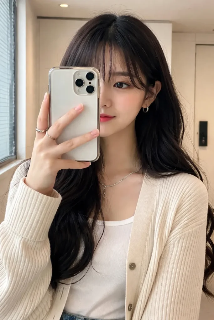 เป็นช็อตยอดฮิตของวัยรุ่นเกาหลีเขาเลย กับการถ่ายภาพเซลฟีที่สะท้อนกับกระจก เห็นมือถือเข้ามามีส่วนร่วมในเฟรมการถ่ายภาพด้วย ซึ่งบางช็อตนั้นก็ดูเหมือนว่าจะไม่ได้ถ่ายจากกระจกโดยตรง แต่เป็นการยกมือถือขึ้นมาเก๋ ๆ ก็มี ดังนั้น เพื่อน ๆ ที่อยากจะถ่ายช็อตแบบนี้ ก็ไม่ต้องมองหากระจกก็ได้นะคะ แค่ยกโทรศัพท์ขึ้นมาบังหน้าเนียน ๆ ก็ได้ช็อตเท่ ๆ ไปอีกแบบ