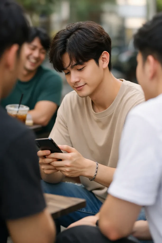 ก็ไม่ได้มีแค่เซลฟีเท่านั้น มุมเผลอ ๆ เขาก็มี ตัวช่วยในการให้ได้มุมเผลอก็ไม่ยาก แค่หนุ่ม ๆ หยิบโทรศัพท์ขึ้นมาแล้วก็แกล้ง ๆ ทำเป็นว่ากำลังเล่นโทรศัพท์อยู่ แต่วิธีนี้การแกล้งทำมันก็แอบเขินเบา ๆ โดยเฉพาะยิ่งเป็นในแก๊งเพื่อนชายแล้ว ก็อาจจะเป็นเรื่องยากไป ถ้างั้นแนะนำว่าให้นัดแนะกับเพื่อน ๆ ก่อน ว่าถ้าเห็นเราเล่นโทรศัพท์ หรือทำอะไรเผลอ ๆ ก็ช่วยสแนปช็อตให้ซะหน่อย เท่านี้เราก็ได้รูปที่ดูธรรมชาติแล้ว แต่มุมจะได้หรือไม่ได้ คงต้องลุ้นกันนิดนึง